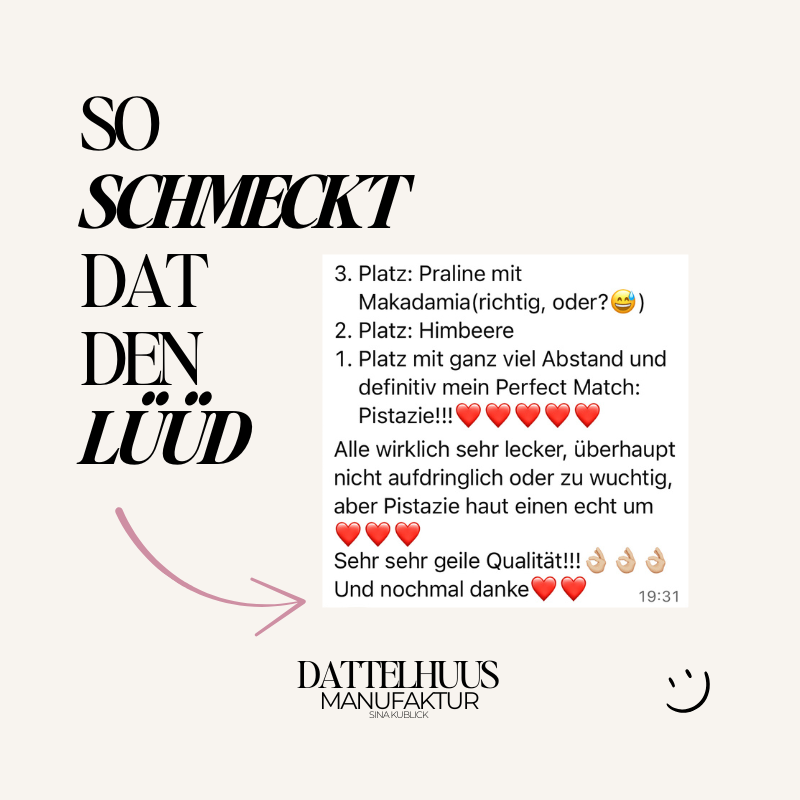 Das Dattelhuus-Konfekt ist für Augenblicke, die du teilst oder für solche, die einfach nur dir gehören.